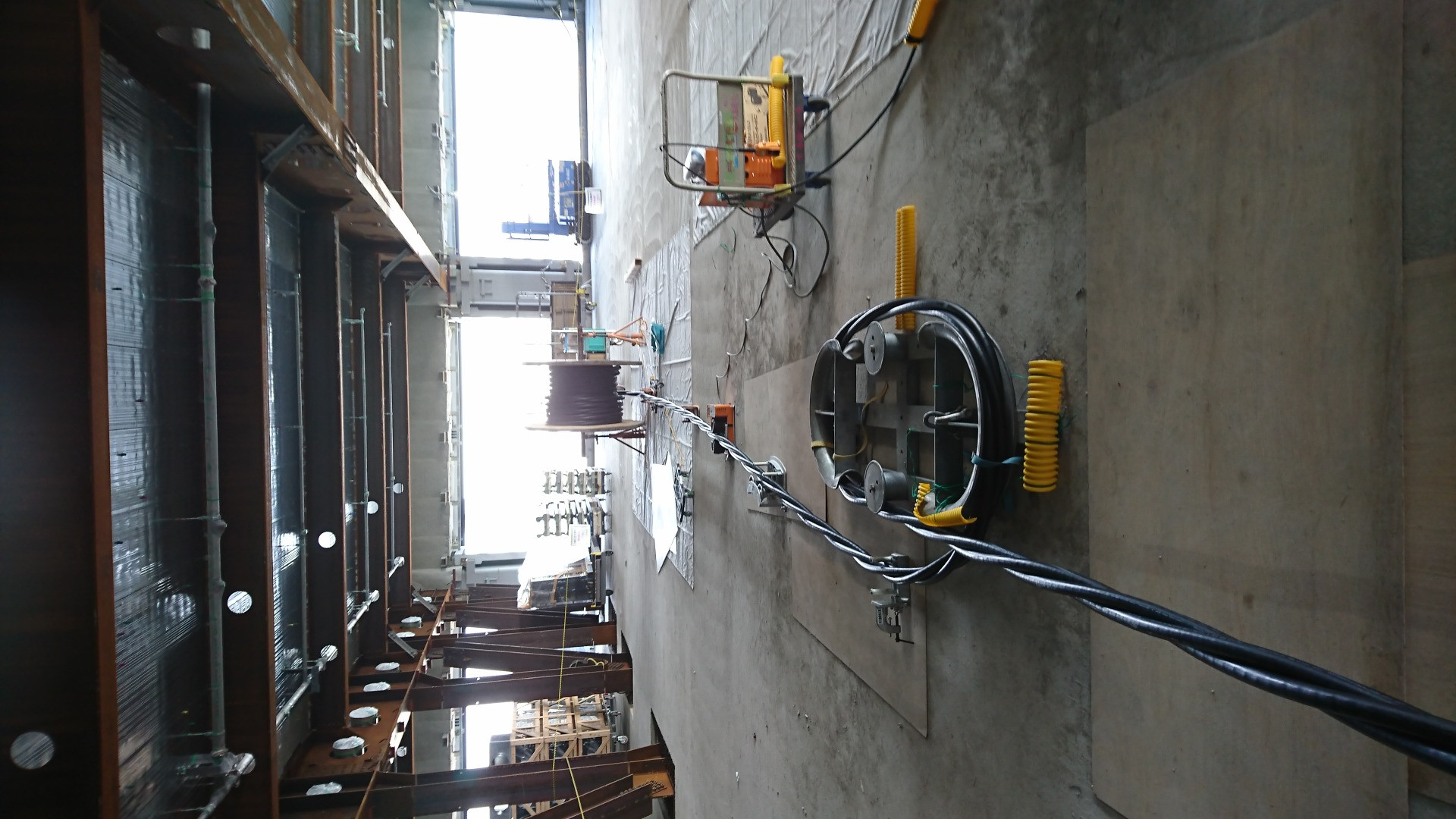 埼玉県北本市のある会社です。麹町にて電気工事を行っています。専用工具にて高圧ケーブル敷設中です。